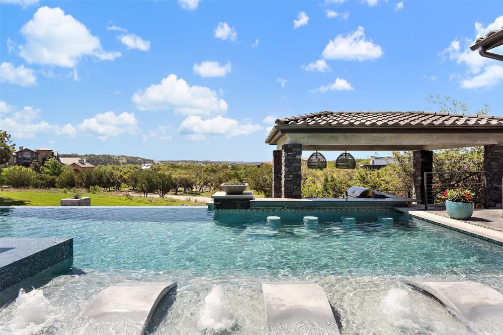 Nestled on a serene cul-de-sac, this stunning Modern Venetian residence, completed in 2021, seamlessly blends timeless architecture w/ contemporary charm. The home is situated on 1.13 acres, with a southwest orientation that captures the hill country panoramas and glimpses of Lake Travis, while graciously welcoming southern breezes. Meticulously crafted, the residence strikes a harmonious balance between seclusion and sweeping vistas. Its intelligently curated layout accentuates al fresco living, with the great room and gourmet kitchen effortlessly spilling onto an expansive veranda & poolside haven, perfect for social gatherings or tranquil moments. The owner's suite, a sanctuary of comfort, features private veranda access, a cozy fireplace, and a lavish ensuite bath w/ ample natural light. Adjacent, a spacious study provides a stylish and tranquil workspace. The recreational wing overlooks the outdoor oasis, offering entertainment options aplenty, from the poolside bar and game room to the media center and stylish wet bar. Completing the home, a 3.5-car garage with ample storage, a convenient laundry/mudroom with pet access, and a second level dedicated to guest accommodations, each with private baths and captivating views. Located in the prestigious gated Reserve at Lake Travis, residents enjoy access to the acclaimed Lake Travis ISD schools, coupled with an enviable locale a mere 15 miles away from the Hill Country Galleria, renowned for its upscale boutiques, culinary delights, and convenience to Whole Foods market. For the boater, a state-of-the-art marina resides within the community. Resort-style opulence, this residence epitomizes both luxury & seclusion, offering an idyllic retreat in an unparalleled setting. The Reserve is an active luxury waterfront community nestled among 311 acres of hill country beauty, surrounded by miles of Lake Travis shoreline w/ an in-neighborhood marina. Seller will convey boat slip lease in marina, boat also available for sale.